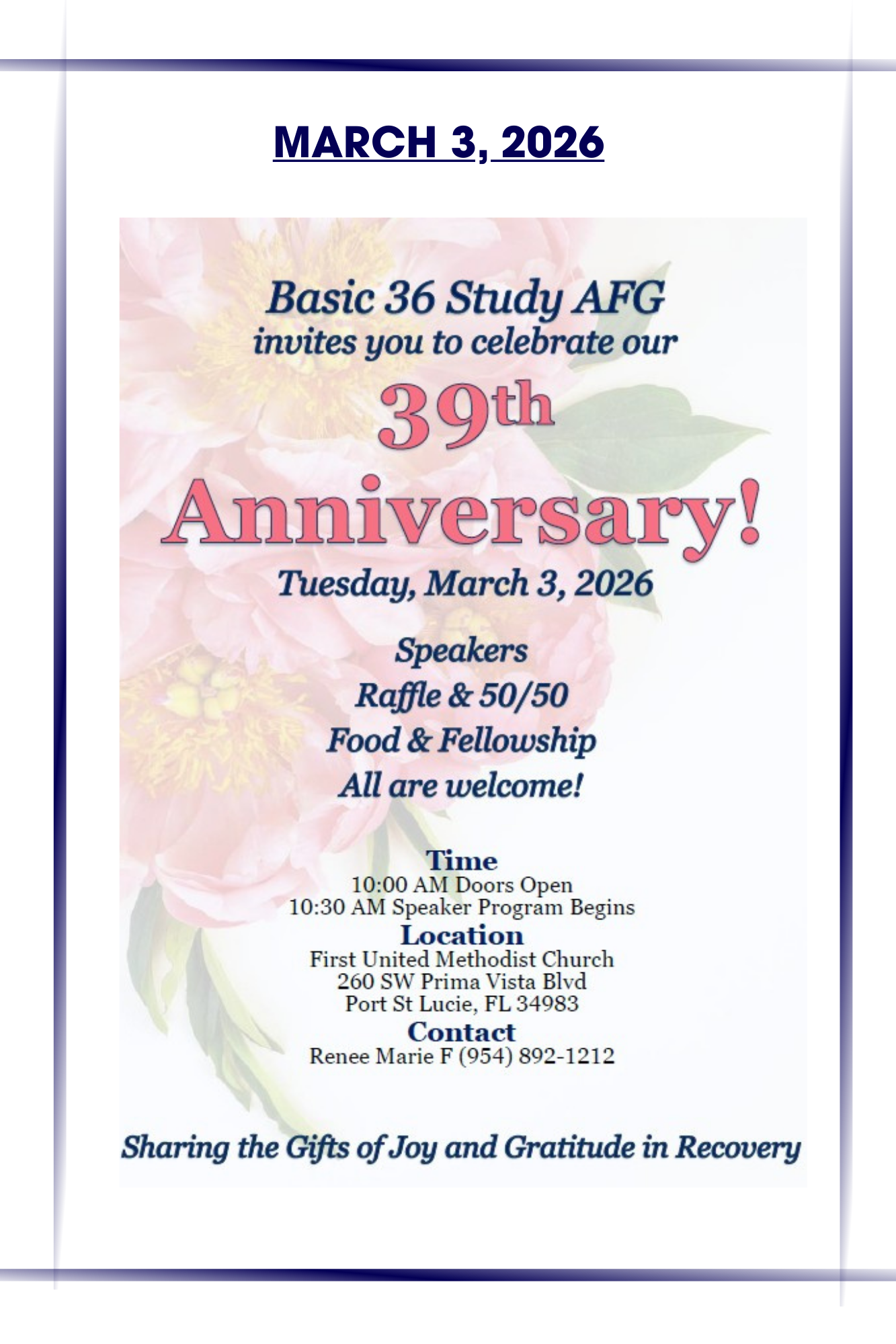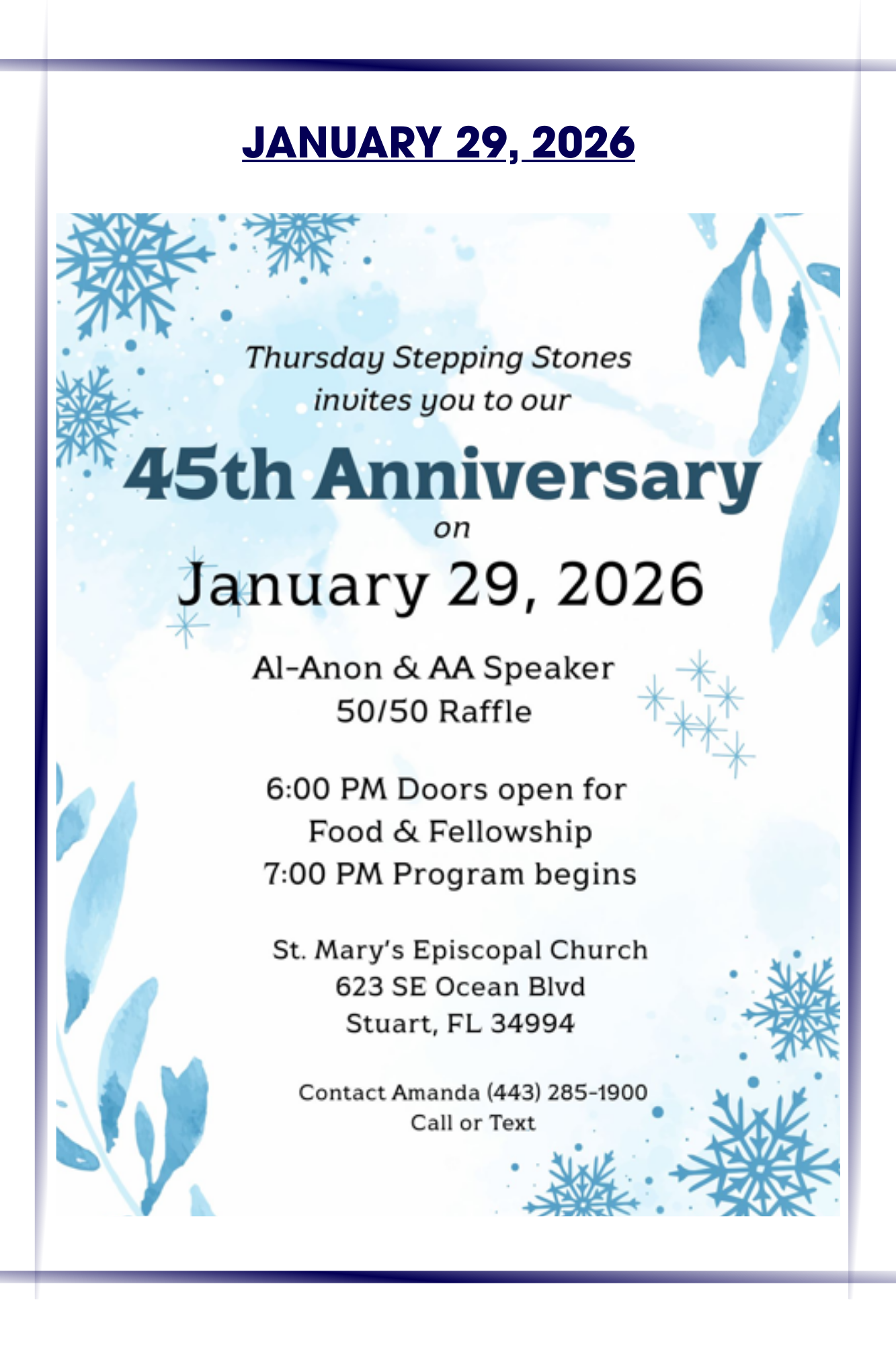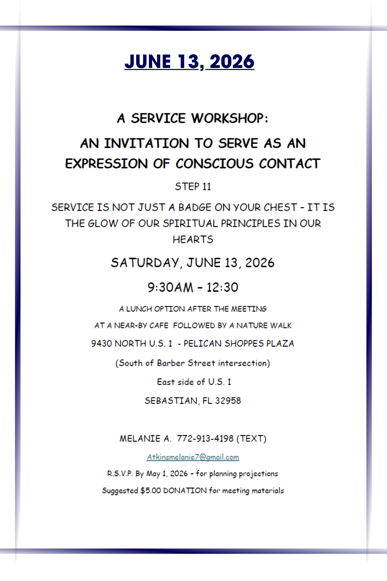 Meetings Schedule: 1/17, 2/21, 3/21, 4/18, 5/16, 6/20 and 7/18